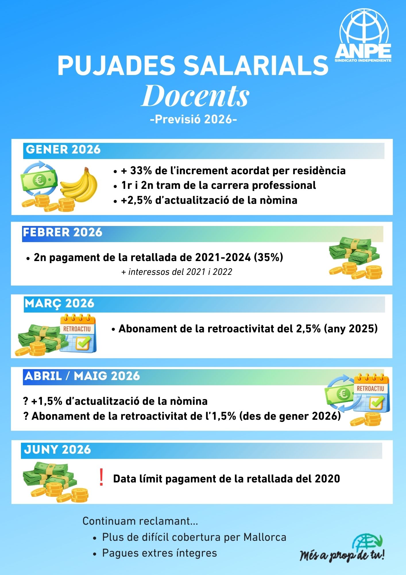 En aquest espai hi trobaràs informació clara i actualitzada sobre la teva nòmina, les pujades salarials i les millores laborals aconseguides gràcies a la nostra acció sindical. T’expliquem com s’estructura la nòmina, quins complements et corresponen i com t’afecten els acords signats.
