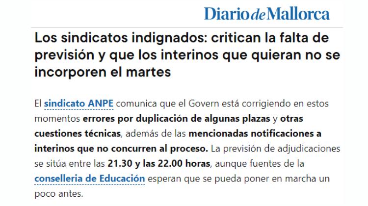 ANPE en els mitjans Acció sindicalANPE aposta per cobrir totes les places docents i recuperar la confiança del professorat