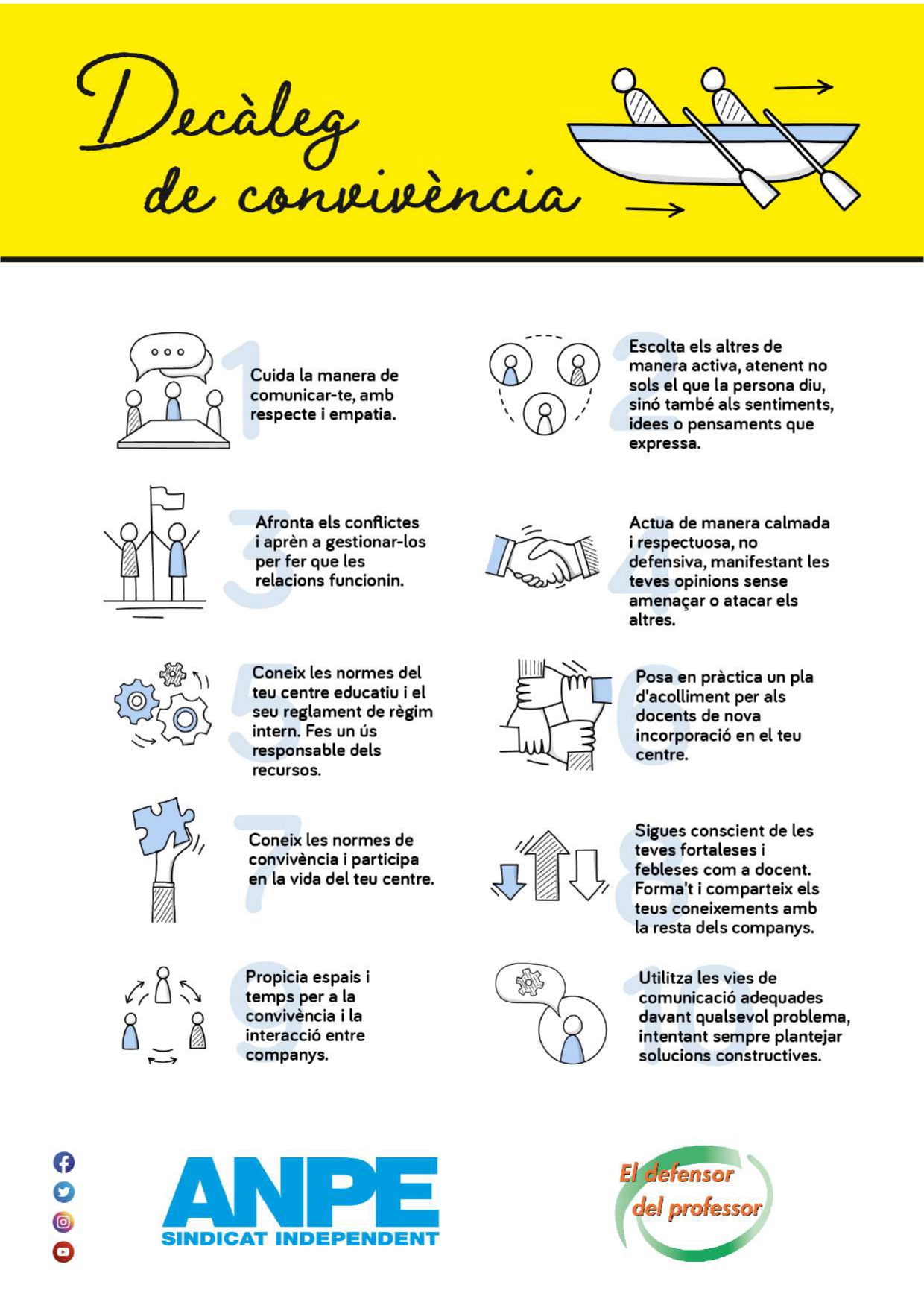 El decàleg proposa pautes d'actuació per a gestionar la comunicació i relacions que es donen entre els docents en el seu dia a dia